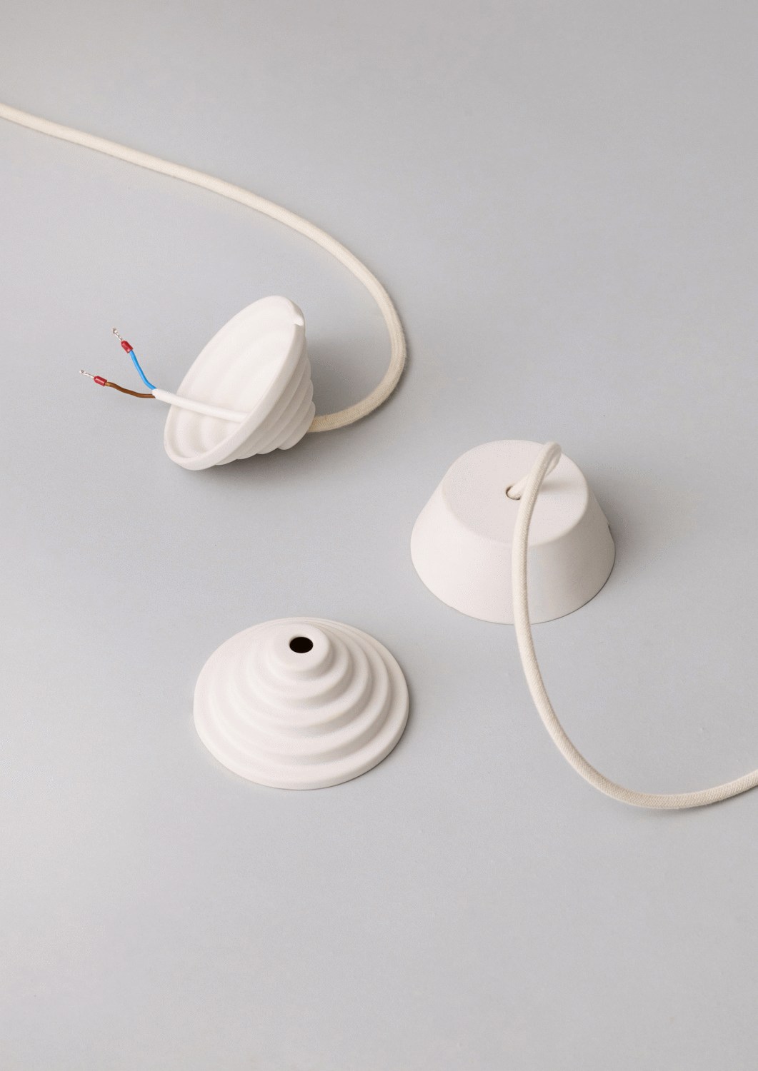Hver baldakin støbes og brændes individuelt, hvilket betyder, at ingen to er helt ens. De små variationer i overflade og farvetone afspejler materialets autentiske karakter og håndværksmæssige fremstilling. Disse naturlige forskelle gør hver baldakin unik og tilføjer et personligt præg til belysningsløsningen.