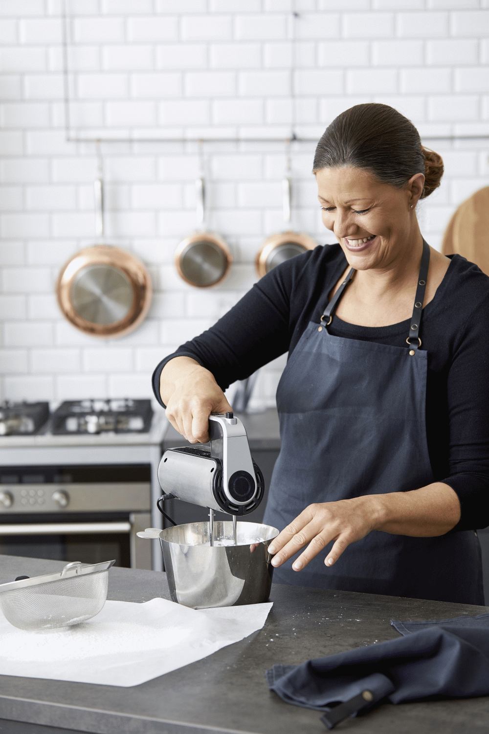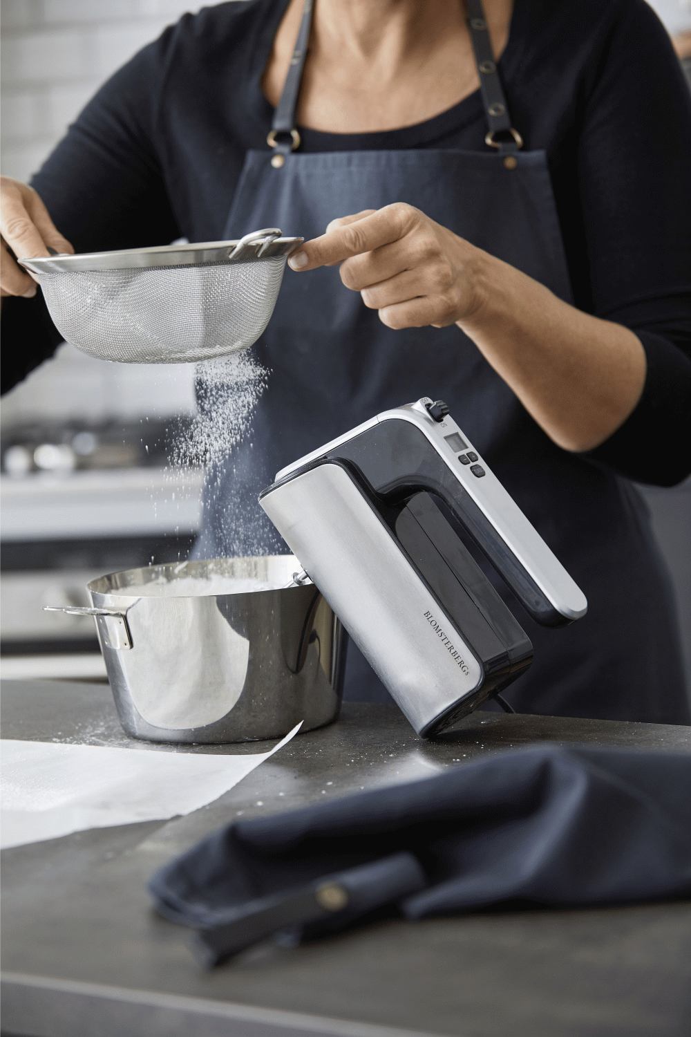 Blomsterbergs håndmikser er designet med praktisk opbevaring for øje, da den kan stå oprejst og dermed optager minimal plads i dit køkkenskab. Dette smarte design kombineret med den pålidelige ydeevne gør denne håndmikser til et uundværligt redskab for både hverdagskokken og den passionerede bager.