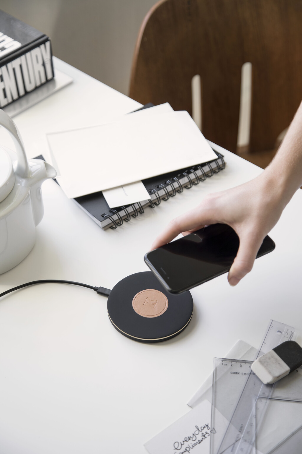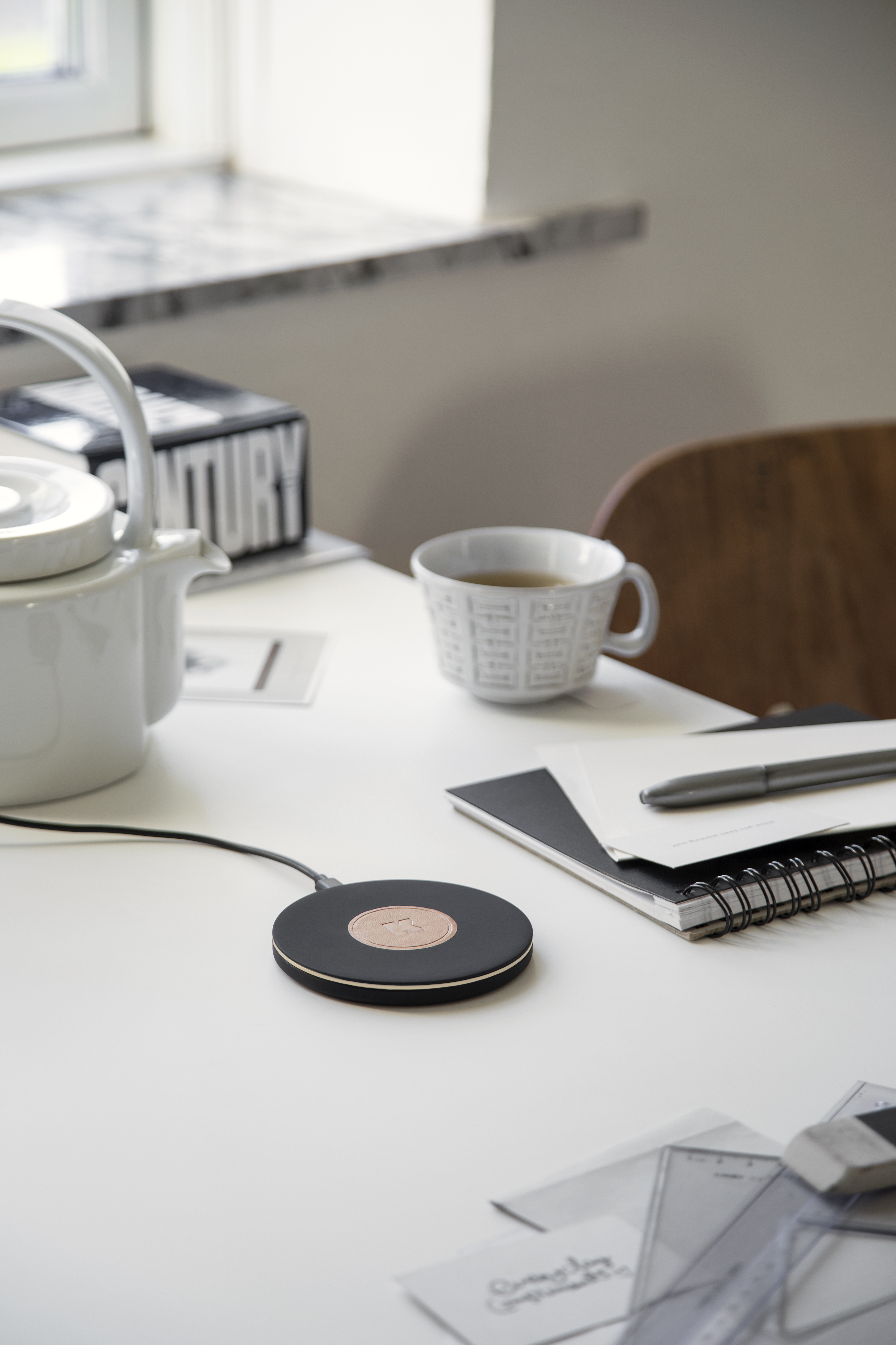 wiCHARGE II er den perfekte opladestation på et skrivebord, i køkkenet, i stuen eller på et sengebord.