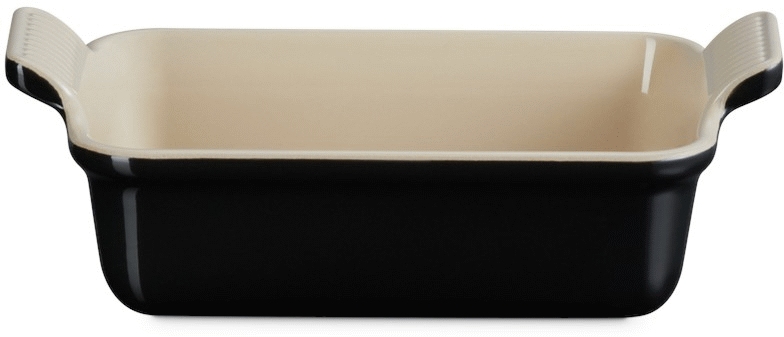Le Creuset Heritage Fad i sort er en tidløs klassiker, der kombinerer funktionalitet med elegant design. Dette rektangulære stentøjsfad på 19 cm er fremstillet af Le Creusets velkendte kvalitetsstentøj, som har vundet indpas i køkkener verden over. Den sorte farve giver fadet et sofistikeret udtryk, der passer perfekt ind i både det moderne og det klassiske køkken.Fadet er designet med tanke på alsidighed i madlavningen. Med sine høje sider på 5,4 cm giver det rigeligt plads til at tilberede alt fra gratiner og lasagne til bagte grøntsager og desserter. De karakteristiske muslingeformede håndtag sikrer et godt greb, selv når du håndterer fadet med grillhandsker.