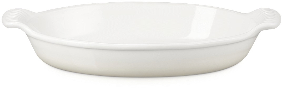 Det klassiske ovale Heritage-fad fra Le Creuset bringer fransk elegance og funktionalitet til dit køkken. Dette 28 cm store fad i den delikate Meringue-farve kombinerer tidløst design med moderne anvendelighed, baseret på Le Creusets ikoniske formsprog fra 1931. Den ovale form er ikke kun æstetisk tiltalende med sine bløde, organiske kurver, men giver også optimal plads til alt fra gratiner til stege.Stentøjsfadet er fremstillet med Le Creusets velkendte kvalitet og omhu, hvilket sikrer en jævn varmefordeling og fremragende varmebevarelse under tilberedningen. Den glaserede overflade er ikke kun smuk at se på, men gør også rengøringen til en leg, da den modstår pletter og ikke absorberer lugte eller smag.