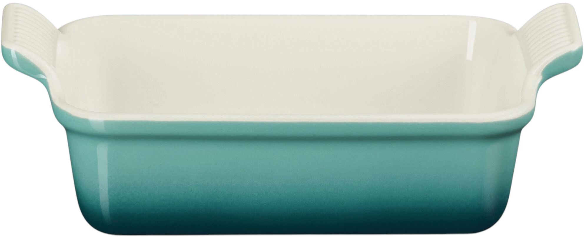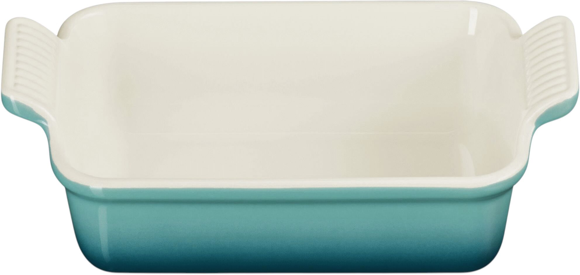 Le Creuset Heritage Rektangulært Fad 19 cm i Bleu Riviera kombinerer praktisk funktionalitet med ikonisk fransk design. Dette alsidige stentøjsfad er fremstillet af særlige lertyper og brændt ved høje temperaturer, hvilket sikrer en robust konstruktion, der kan modstå daglig brug i mange år fremover.Fadet er designet med de karakteristiske muslingeformede håndtag, der giver et sikkert greb, når du skal flytte maden fra ovn til bord. Den rektangulære form med en kapacitet på 1,1 liter gør det ideelt til en bred vifte af anvendelser – fra marinering af kød og fisk til bagning af gratiner og servering af lækre desserter. Den smukke Bleu Riviera-farve tilføjer et farverigt touch til dit køkken og spisebord.