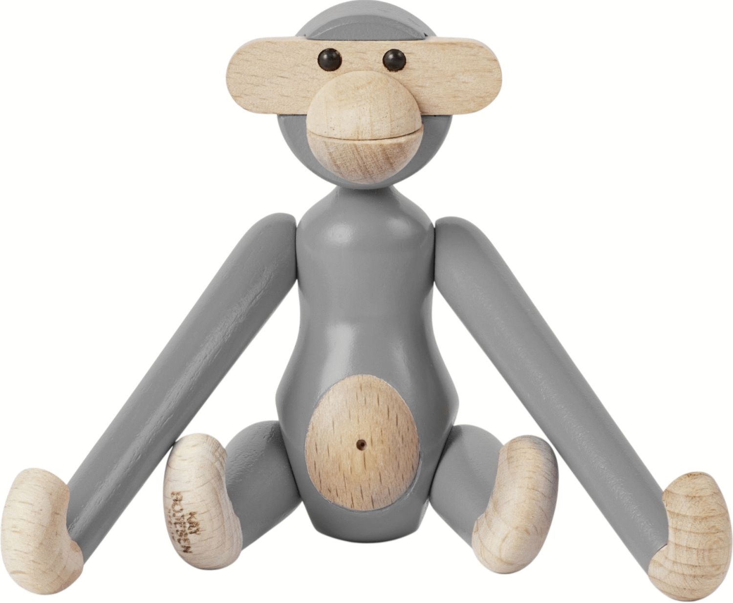 En både nostalgisk og nyskabende humørspreder. Kay Bojesens abe har altid haft en farverig personlighed, og med den ikoniske miniabe i bøgetræ i nye og mere farverige klæder bygger vi ydmygt og med et glimt i øjet videre på Kay Bojesens designarv og skaber nye originaler. Miniaben i grå emmer af livsglæde og fremstår i et flot trendy look, hvor den rolige farve står smukt til bøgetræets kølige udtryk og er med til at fremhæve skønheden i træet. Den grå farve hylder naturens dybe ro og evige afslappethed med drivende skyer og strandenes dæmpede, grålige nuancer. Aben måler 9,5 cm i højden og er fremstillet i FSC®-certificeret bøgetræ, der træder frem på hænder og fødder, ansigt og mave og giver miniaben i bøgetræ et lidt kækt og ungdommeligt præg. Brugen af farver gør aben perfekt som et legende element i en moderne indretning, hvor den vil skabe smil og stil med sin finurlige fremtoning og sit farverige udseende – uanset hvor den flytter ind. De farvede miniaber er et æstetisk statement, der minimalistisk og elegant fremhæver Abens runde former og understreger Kay Bojesens grafiske og enkle design. Med miniaben i et væld af farver hyldes originalt dansk design i et nyt og sprudlende udtryk med stemningsfremmende farver, legende farvekombinationer og smukt håndværk.Længde: 3,5 cm