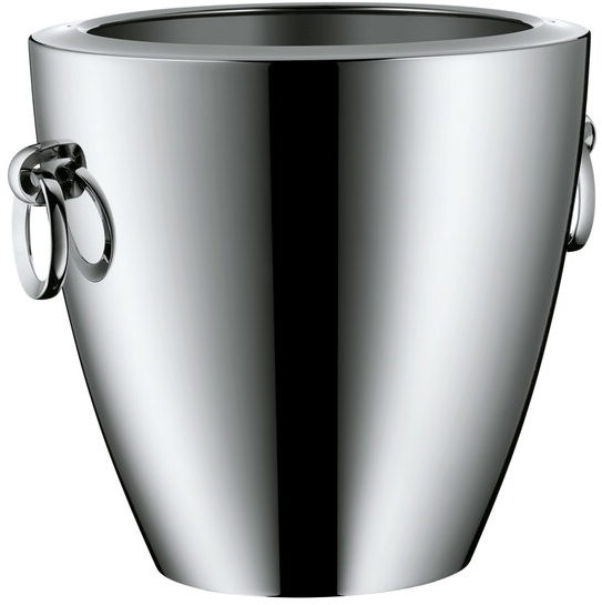 JETTE champagne køleren er lavet af Cromargan® rustfrit stål 18/10. Den er 24 cm i diameter og 23 cm høj, så den passer godt til bordet uden at være for dominerende. Når den er fyldt med is holder champagnekøleren dine fine vine dejlig kølige i lang tid. JETTE champagne køleren er lavet af Cromargan® rustfrit stål, og den kan gå i opvaskemaskinen.