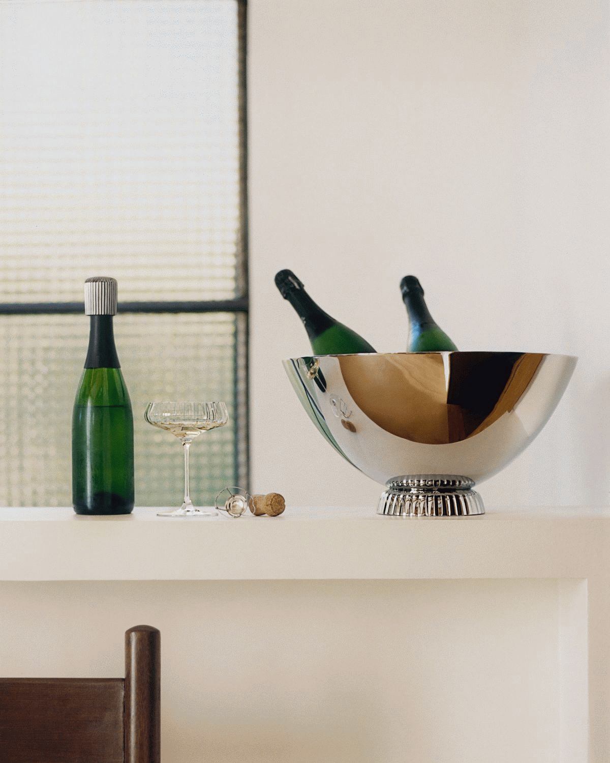 Dette elegante design i rustfrit stål har fine detaljer, inspireret af Sigvard Bernadottes riflede signaturmønster. Champagnekøleren rummer op til to flasker og er fremstillet med en dobbeltvægget struktur, som holder champagnen kølig i længere tid.Længde: 4 cm