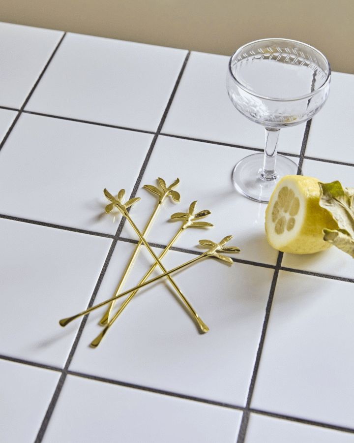 House Doctor Serve rørepinde i antik guld er designet til at tilføje et raffineret touch til dine drinks og cocktails. Med deres skulpturelle toppe og varme guldtone bliver hver servering til en lille begivenhed, uanset om det er til hverdagsbrug eller festlige anledninger.Disse elegante rørepinde kombinerer funktionalitet med æstetisk appel. Den antikke guldfinish skaber en eksklusiv fornemmelse, der løfter både simple og avancerede drinkoplevelser. De skulpturelle toppe fungerer ikke kun som dekorative elementer, men gør det også nemt at røre rundt i dine yndlingsdrikke, mens de tilfører et visuelt interessant element til glasset.