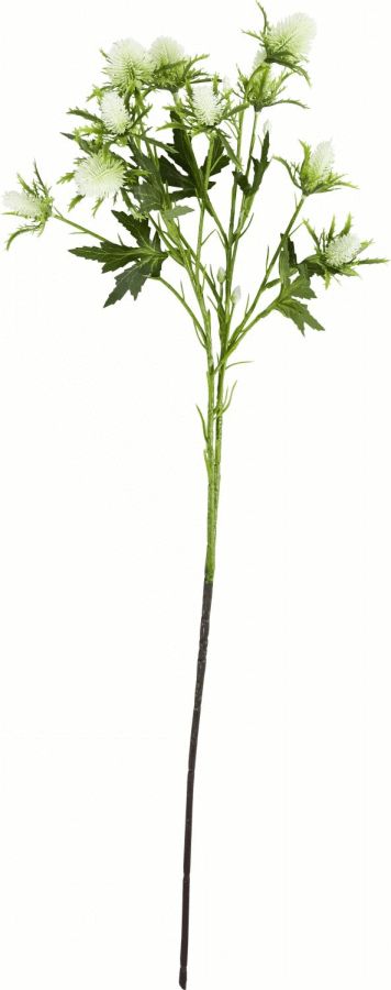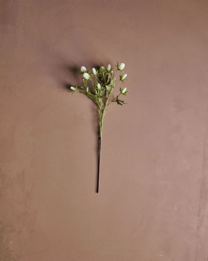 Mandstroen er kendt for sin skulpturelle form, og denne kunstige udgave gengiver plantens naturlige udtryk med imponerende præcision. De spidse blomsterhoveder er udformet med fine detaljer, der skaber dybde og dimension, mens den hvide farve giver et rent og tidløst udtryk. Denne kunstige plante passer perfekt ind i både moderne og klassiske indretninger, hvor den kan stå alene som et statement eller indgå i en større buket.