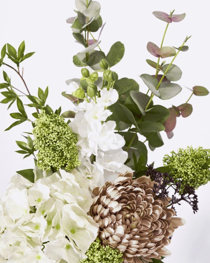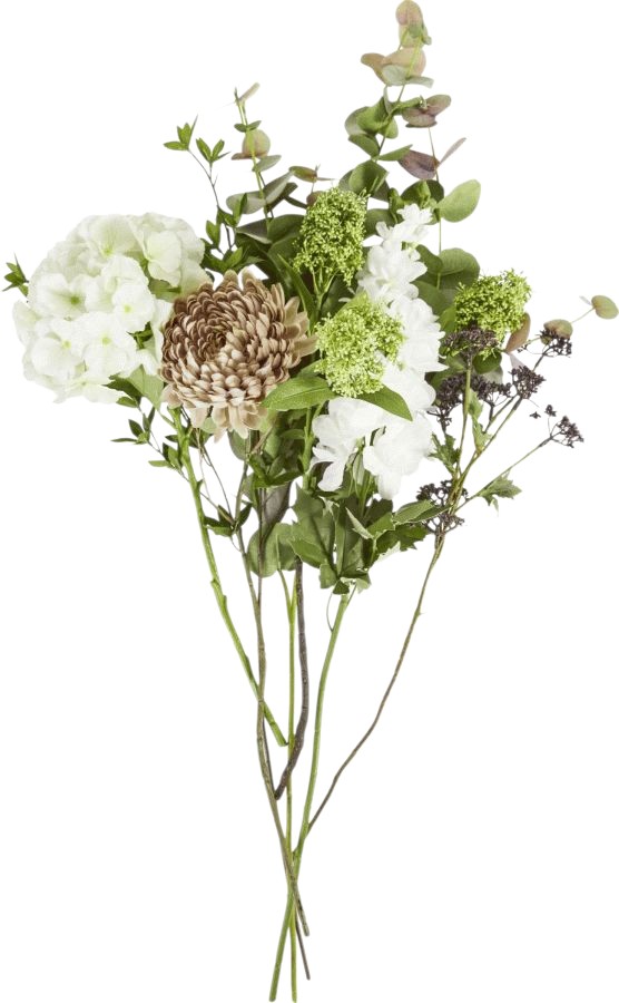 - Kunstig blomsterbuket i creme og grønne nuancer