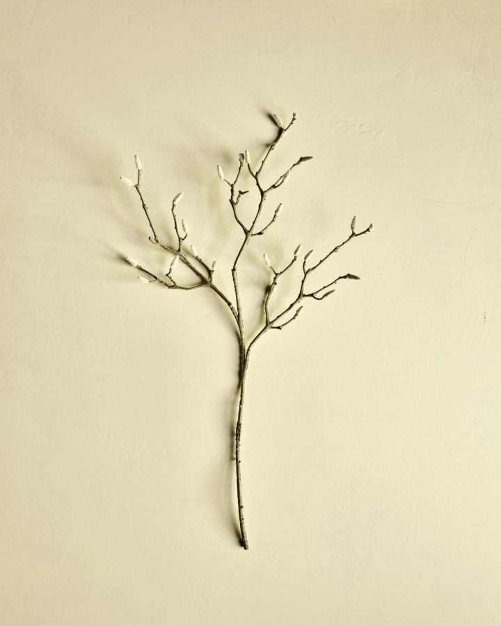 Designet er kendetegnet ved sin minimalistiske tilgang, hvor de fine, hvide blade folder sig ud langs de slanke grene og danner en harmonisk komposition. Den skulpturelle form gør planten ideel til at skabe visuel interesse i rum, der trænger til et stilrent og tidløst accent. Uanset om du placerer den i en høj gulvvase i entréen, som en del af en stillebenskomposition på et sidebord eller som et enkelt statement i stuen, vil den hvide farve passe naturligt ind i både moderne og klassiske interiører.
