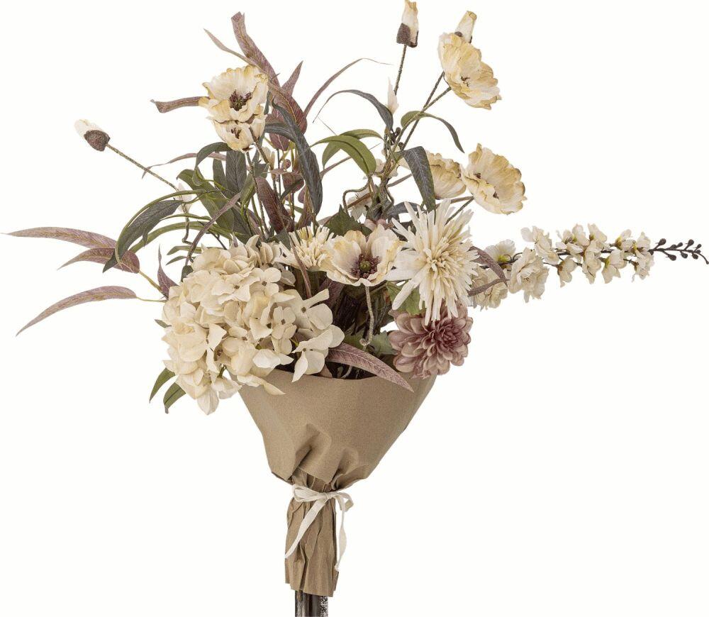 Denne kunstige buket fra Bloomingville bringer en harmonisk kombination af naturlige farvetoner ind i hjemmet. Buketten er sammensat af bløde nuancer i beige, grøn og rosa, der skaber en rolig og elegant atmosfære i ethvert rum. Med sin imponerende højde og fylde giver den en markant tilstedeværelse, der passer perfekt til både moderne og klassiske indretningsstile.Designet er omhyggeligt udført med fokus på detaljer og æstetik. Hver stilk indeholder en forseglet metaltråd, der gør det muligt at forme og arrangere buketten efter eget ønske. Den afdæmpede brune papirindpakning og det smalle bånd tilføjer et rustikt og autentisk præg, som understreger den naturlige inspiration bag designet.