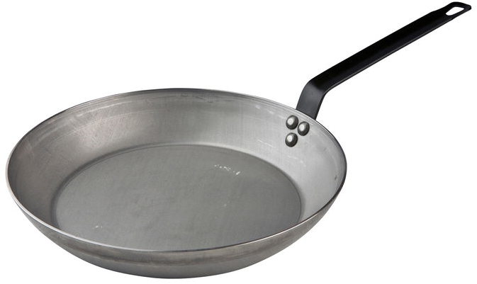 Professionel kvalitet i sort stål, der med tiden får en naturlig non-stick-egenskab.• Pande i ekstra tykt sort stål (kulstofstål) på 1,2-3 mm.