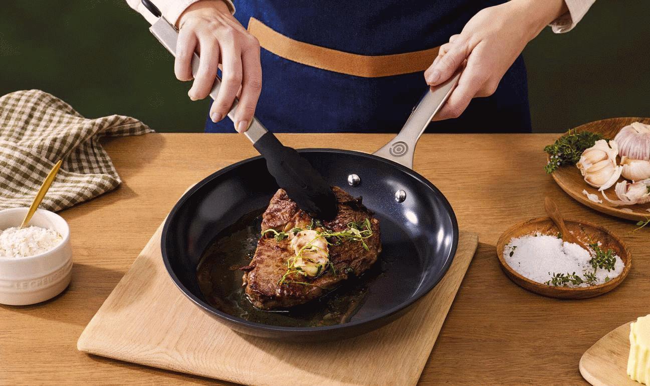 Le Creuset Essential Stegepande med keramisk belægning kombinerer elegant design med overlegen funktionalitet og sætter nye standarder for kvalitet i køkkenet. Denne 28 cm stegepande i sort er fremstillet af rustfrit stål og beklædt med en innovativ helkeramisk belægning, der giver exceptionelle non-stick egenskaber uden brug af PFAS.