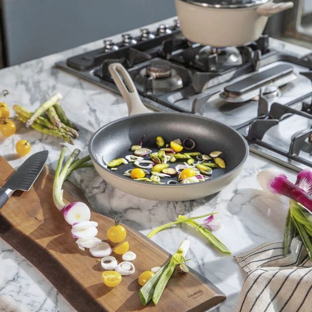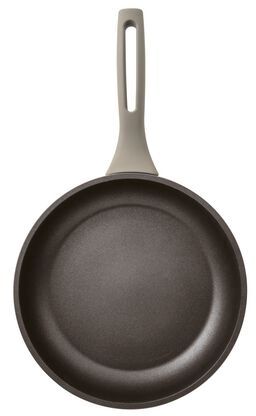 Designet er gennemtænkt med fokus på brugervenlighed. Håndtaget er ergonomisk udformet med soft-touch overflade, der giver et behageligt greb og god kontrol under madlavningen. Håndtaget kan desuden hænges op, så panden er let at opbevare. Glaslåget følger med og har en praktisk detalje: knappen kan bruges som skeholder, hvilket gør madlavningen endnu mere praktisk.