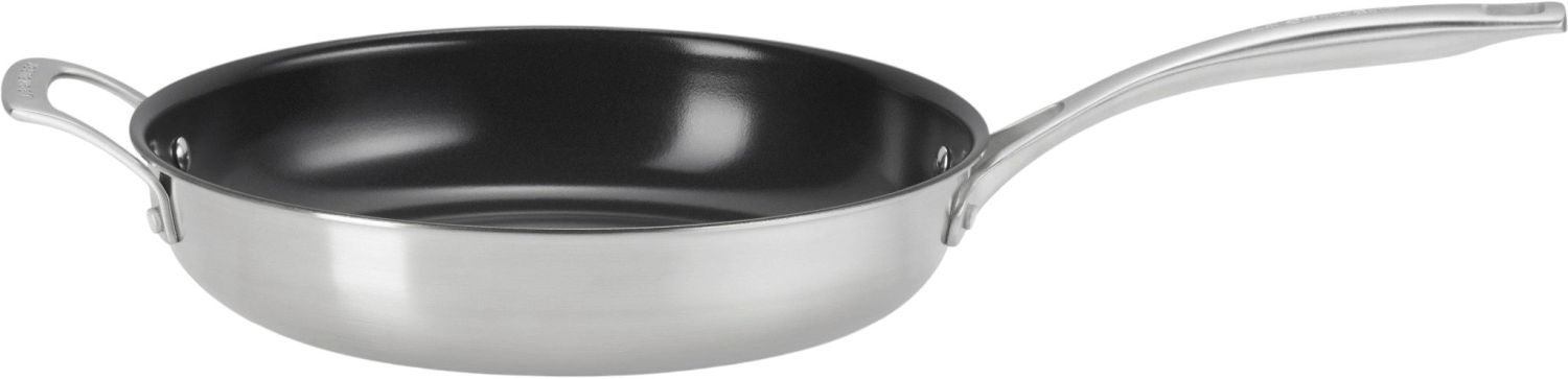 Le Creusets Essential 3-Ply stegepande i rustfrit stål med non-stick belægning kombinerer funktionel design med avanceret teknologi til den moderne madlavning. Med en diameter på 28 cm er denne stegepande ideel til at tilberede alt fra sprøde grøntsager til perfekt stegte fiskestykker, hvor den keramiske belægning sikrer, at maden slipper let og resultatet bliver ensartet.Stegepanden er fremstillet med en 3-lags konstruktion, der garanterer en effektiv og jævn varmefordeling over hele madlavningsoverfladen. Dette design eliminerer varme pletter og sikrer, at dine retter tilberedes præcist, uanset om du bruger lav eller middel varme. Den børstede yderside i rustfrit stål giver panden et elegant og tidløst udtryk, der passer ind i ethvert køkken.