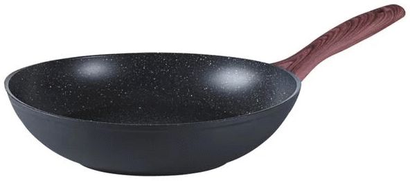 Håndtaget har en træeffekt med en ergonomisk form og soft-touch overflade, der giver et sikkert greb under madlavningen. Wokkens alsidige design gør den velegnet til alle typer komfurer, herunder induktion, så du kan bruge den uanset dit køkkenudstyr.