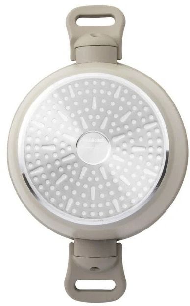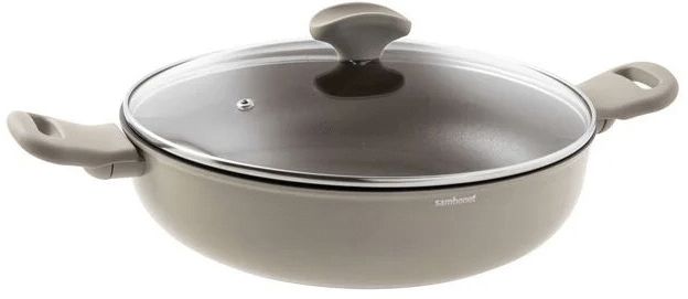 Med en diameter på 28 cm og en kapacitet på 4 liter er denne wok ideel til familiens hverdagsmad. Den 8,5 cm høje kant giver rigelig plads til at vende og røre ingredienserne uden spild. Det beige og gråtonede design passer naturligt ind i ethvert køkken, mens det praktiske glåg med knop, der fungerer som skeholde, gør tilberedningen endnu mere bekvem.