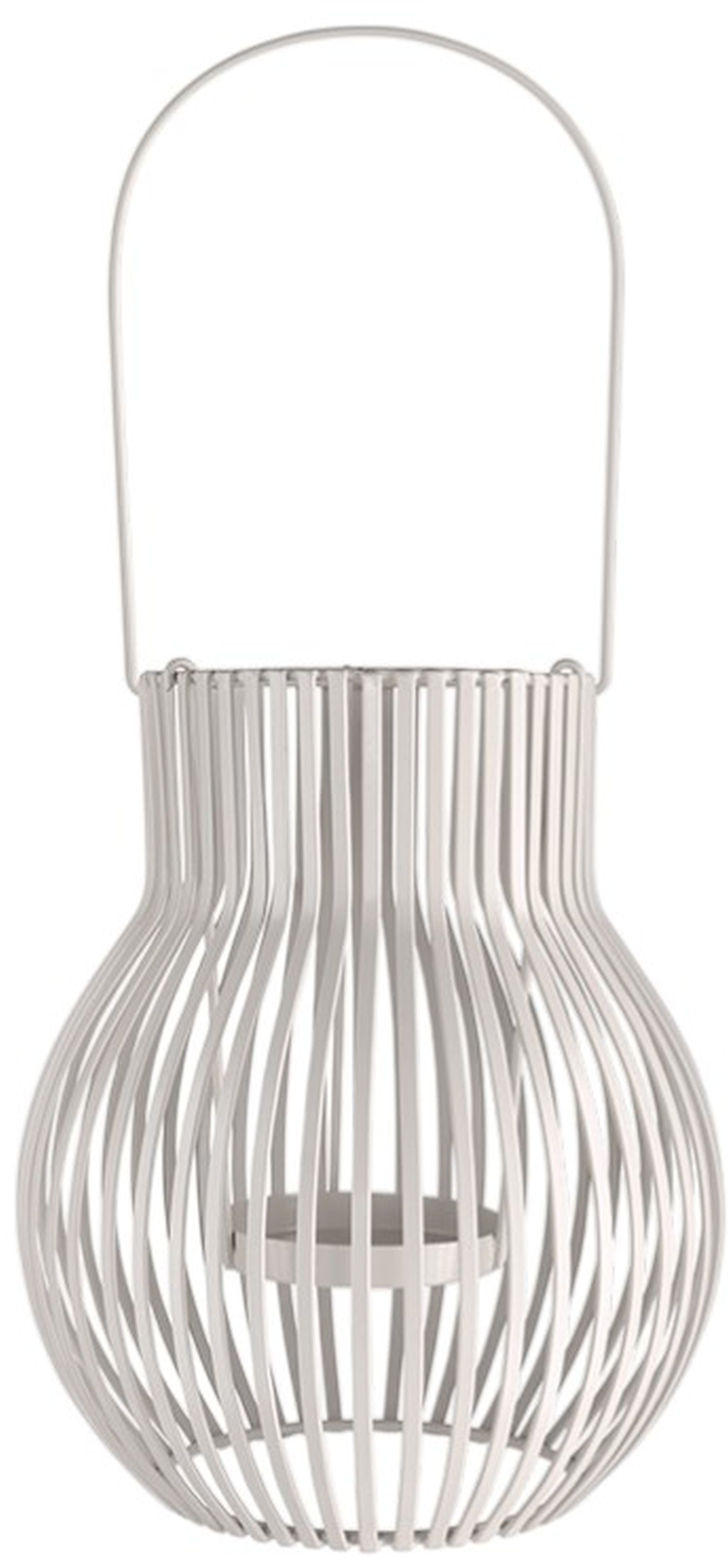 Lanternen er fremstillet i pulverlakeret jern, hvilket giver den en robust konstruktion og en smuk overflade i Light Grey. Den skulpturelle form balancerer styrke med enkelhed og skaber en underspillet skønhed, der let integreres i forskellige indretningsstile. Designet er kendetegnet ved præcise linjer og en geometrisk æstetik, der gør lanternen til et dekorativt element, selv når den ikke er tændt.