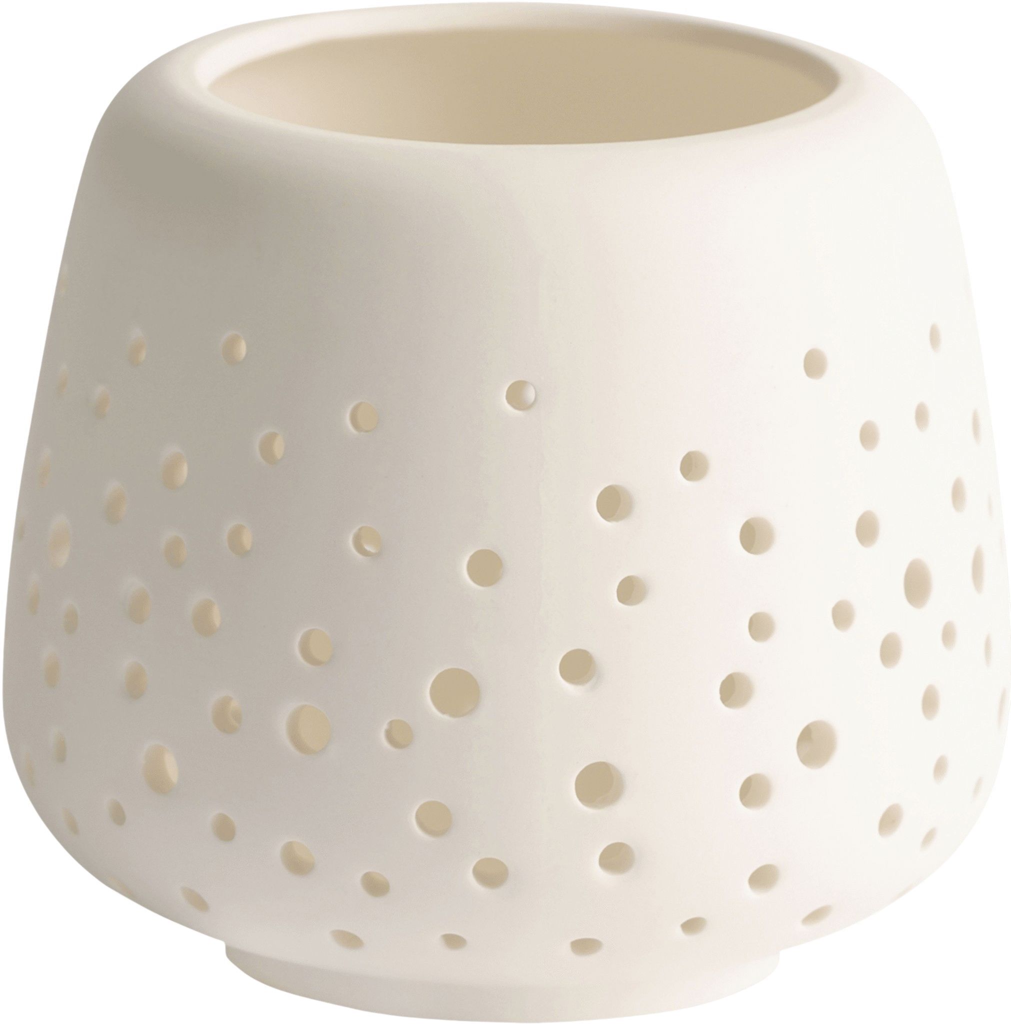 Denne charmerende keramiklanterne fra Uyuni Lighting bringer nordisk elegance og varm atmosfære til enhver bolig. Med sin rene hvide finish og gennemtænkte proportioner på 9,5 cm i højde, repræsenterer den det bedste af skandinavisk designtradition, hvor funktionalitet møder æstetisk skønhed.Lanternens fine udskæringer i keramikken skaber et fascinerende lysspil, når lyset fra et stearinlys filtreres gennem de delikate åbninger. Det bløde, diffuse lys spreder sig harmonisk og skaber en intim og afslappende stemning, der gør enhver aften til noget særligt. Den kompakte størrelse gør den ideel til mindre rum eller som supplement til større belysningsarrangementer.
