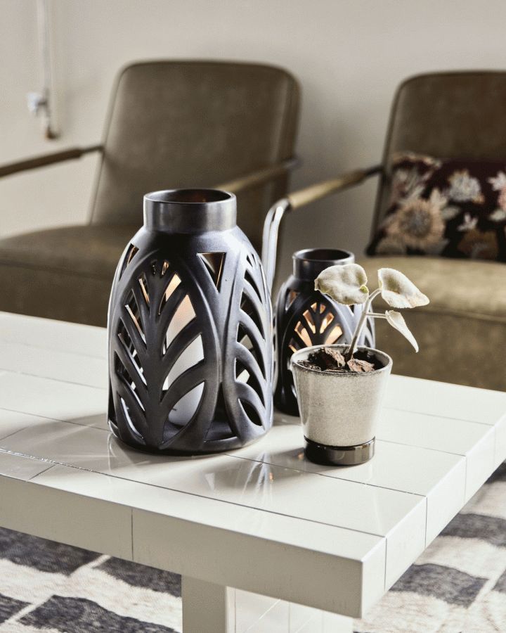 House Doctor Elm lanternen i sort stentøj bringer en raffineret og kunstnerisk atmosfære til ethvert rum med sit karakteristiske, udskårede botaniske mønster. Med en højde på 32 cm og et markant design skaber denne lanterne et fascinerende samspil mellem lys og skygge, når flammen danser bag de detaljerede udskæringer. Det håndværksmæssige udtryk i det sorte stentøj giver lanternen en tidløs elegance, der passer perfekt ind i både moderne og klassiske indretningsstile.Det botaniske mønster er omhyggeligt udskåret i lertøjet og fremhæver naturens organiske former på en subtil og smuk måde. Når lyset tændes, projiceres motivet ud i rummet og skaber en stemningsfuld belysning, der inviterer til afslapning og hygge. Lanternes sorte finish giver den en diskret og stilren fremtoning, der let kan kombineres med forskellige farvepaletter og indretningselementer.