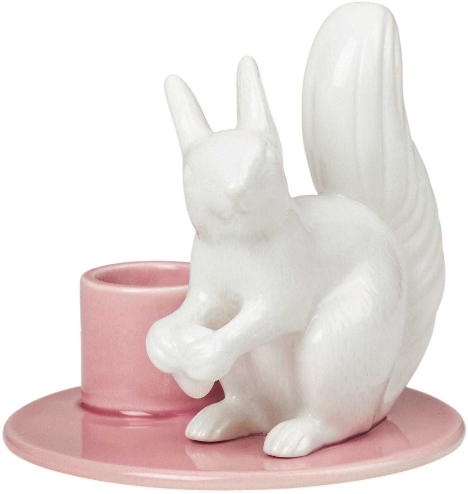 Denne charmerende lysestage i form af et egern fra Dottir Nordic Design bringer liv og personlighed til hjemmets indretning. Med sin blush-nuance og detaljerede udformning skaber den en varm og indbydende atmosfære, uanset om den placeres på bordet, i vindueskarmen eller på en hylde.Sweet Stories-kollektionen fra Dottir Nordic Design udmærker sig ved sin evne til at forene funktionalitet med legende design. Denne lysestage er fremstillet i porcelæn, hvilket sikrer både holdbarhed og en fin finish, der fanger lyset smukt. Den blush-farvede bund tilføjer et moderne og elegant touch, som passer perfekt ind i skandinaviske hjem, hvor enkle linjer og naturinspirerede motiver værdsættes.