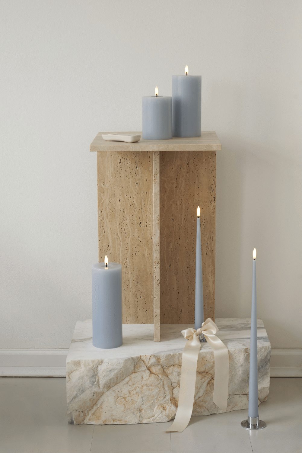 Med en højde på kun 2,3 cm og en diameter på 6 cm er disse lysestager perfekte til at skabe en intim og hyggelig atmosfære uden at dominere bordet eller vindueskarmen. Det lave design sikrer, at lyset forbliver det centrale element, mens stagerne diskret understøtter og fremhæver stearinlysenes naturlige skønhed. Denne gennemtænkte proportion gør dem ideelle til både hverdagsbrug og festlige lejligheder.