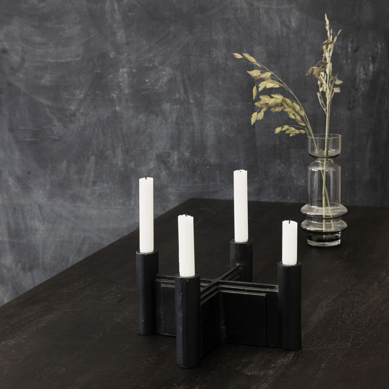 Når du bruger lysestager i indretningen, kan du skabe en helt særlig stemning, der emmer af hygge og varme. Denne smukke lysestage, Layers, er formet som et sort kryds med små detaljer, der gør stagen unik. Brug lysestagen som et enkeltstående dekorationselement på sofabordet i stuen eller kombiner den med en enkel glasvase i vindueskarmen, for at sætte prikken over i’et.Lige gyldigt hvordan og hvad du kombinerer stagen med, vil den pryde.