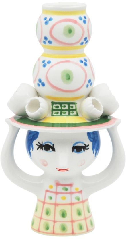Lysestagen er ikke blot funktionel, men indbyder også til kreativ anvendelse i din indretning. Den kan bruges traditionelt med lys eller som en dekorativ vase til en enkelt blomst. Ligesom Bjørn Wiinblad selv, repræsenterer Lady With Hat-lysestagen alt, hvad der er skørt, skævt, kreativt og vidunderligt - en perfekt tilføjelse til det hjem, der værdsætter unikke designobjekter med personlighed og sjæl.