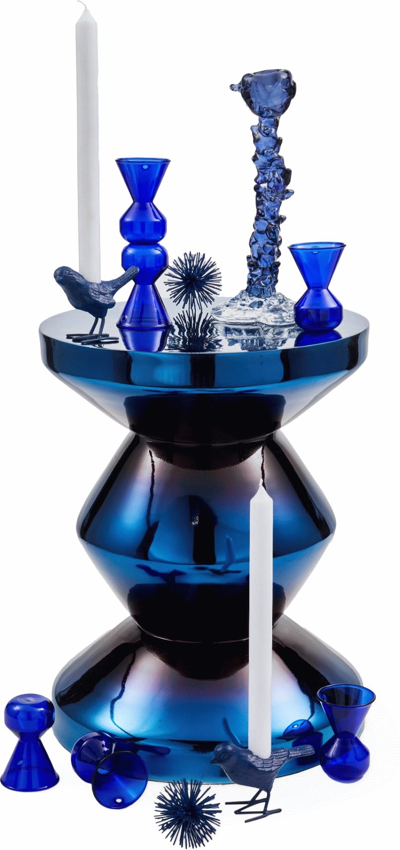 Den gennemsigtige glasudførelse giver lysestagen en moderne og luftig fremtoning, der passer perfekt ind i nutidens interiørtrends. Den mørkeblå farve tilføjer dybde og elegance, mens den samtidig bevarer den klassiske Drip-æstetik, som har gjort denne lysestage til en designikon. Glasmaterialet reflekterer lyset smukt og skaber spændende lyseffekter i rummet.
