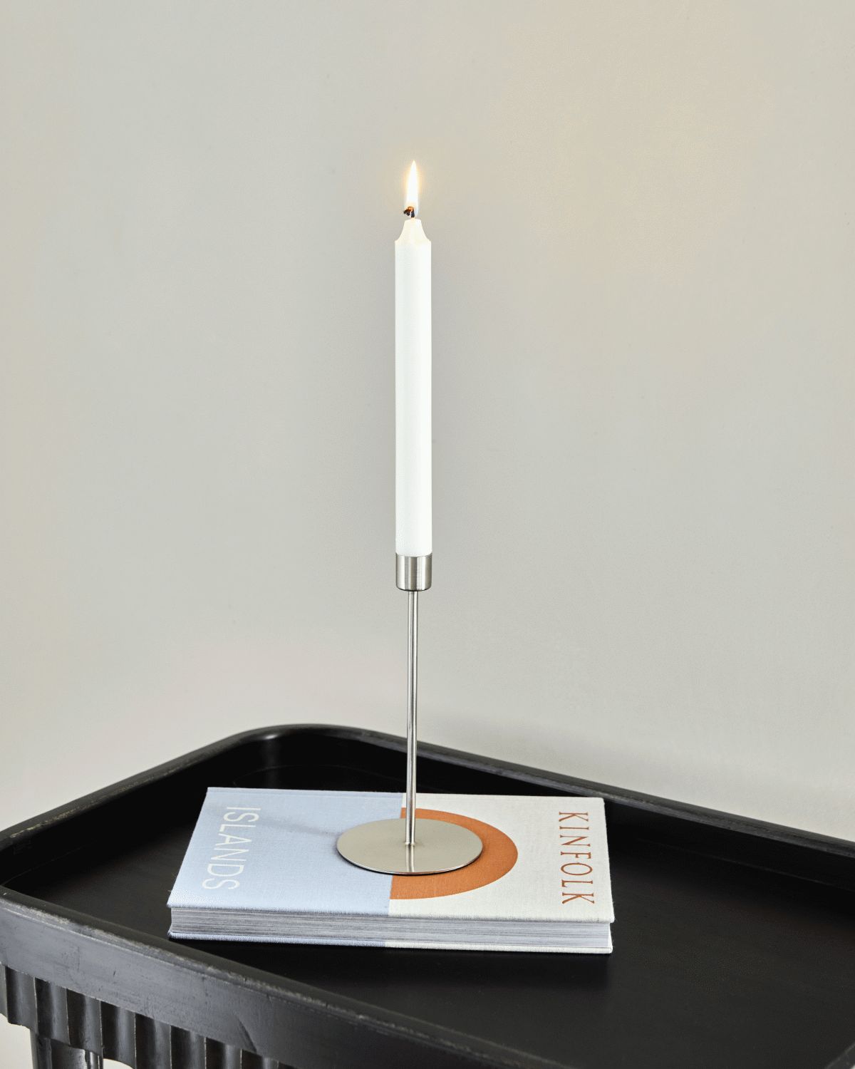 Lysestagen er fremstillet i jern og behandlet med en raffineret sølvfinish, der skaber et stilrent og moderne udtryk. Den diskrete metaloverflade reflekterer lyset på en måde, der giver en blød glans uden at virke overdreven. Med sin højde på 20 cm og en diameter på 9,5 cm har Anit lysestagen en afbalanceret proportion, der gør den ideel til forskellige opstillinger rundt omkring i hjemmet.