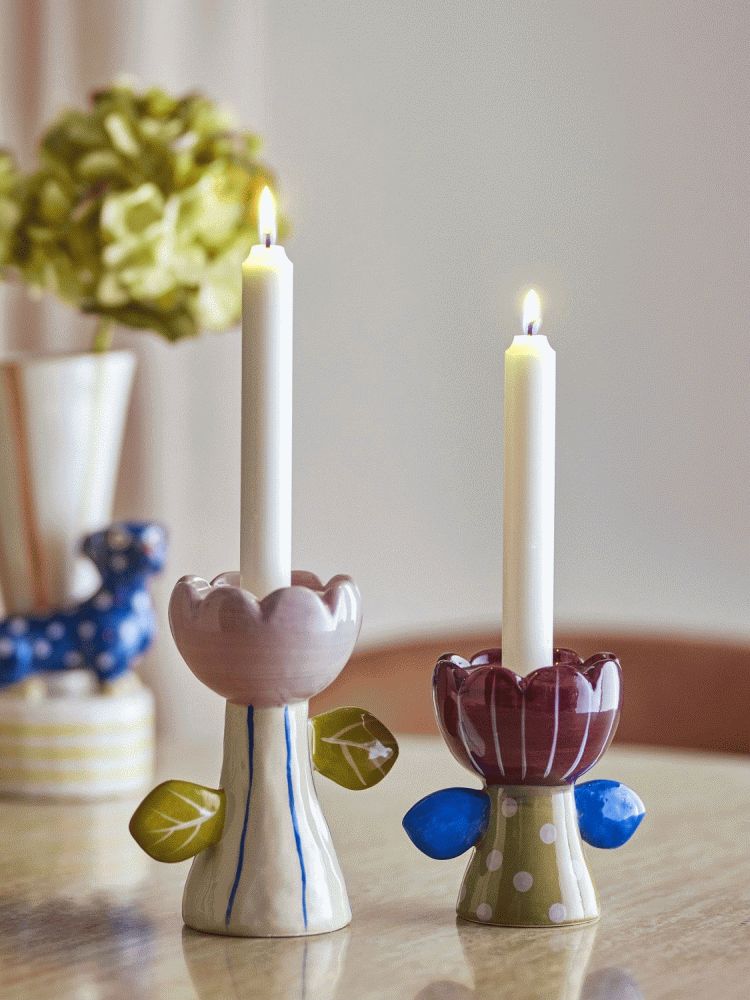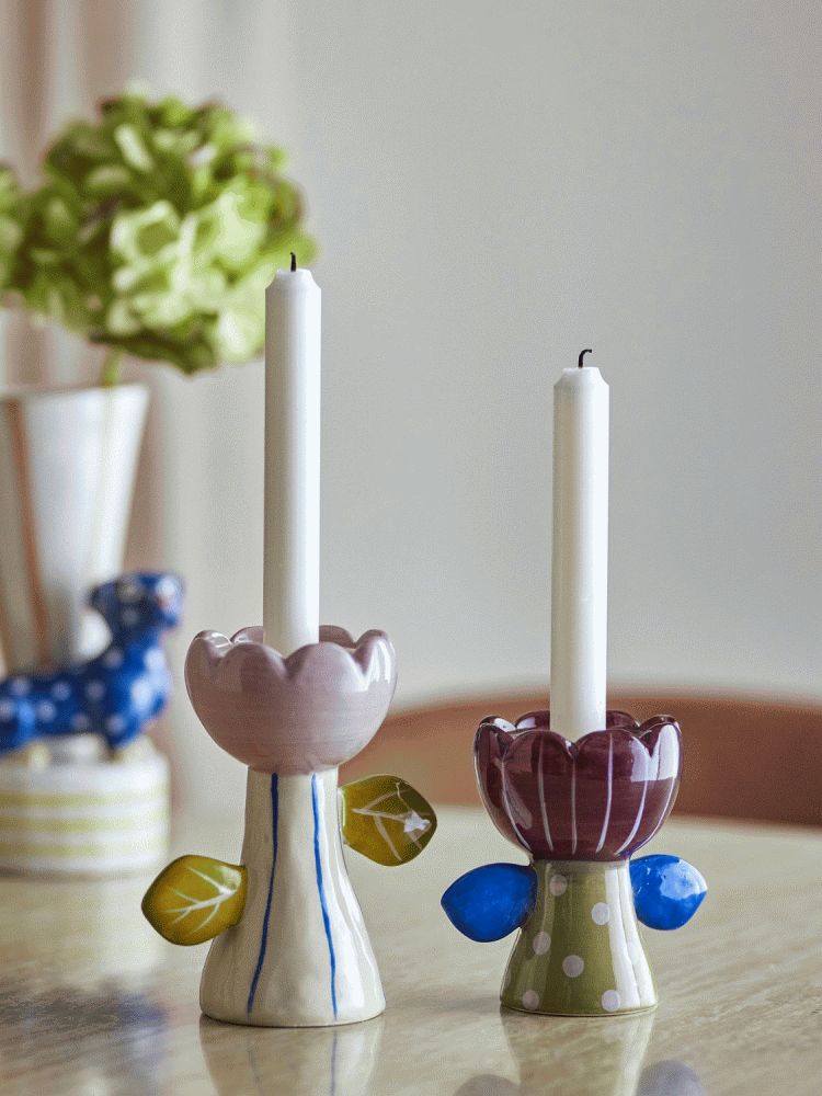 Med deres kompakte størrelse og dekorative udtryk fungerer disse lysestager også glimrende som selvstændige dekorationselementer, selv når de ikke er tændt. De tilføjer farve og liv til ethvert rum og er et smukt eksempel på Bloomingvilles evne til at forene funktionalitet med æstetisk design.