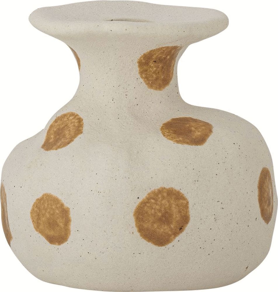 Byron Lysestagen fra Creative Collection er en smuk lysestage i stentøj, der kombinerer organisk formgivning med håndværksmæssig kvalitet. Med sin runde form og let udsvajede top skaber den en blød og indbydende silhuet, der passer perfekt ind i moderne skandinaviske hjem. Lysestagen er fremstillet i robust stentøj, et materiale kendt for sin holdbarhed og tidløse æstetik.Den karakteristiske reaktive glasur giver lysestagen et unikt udtryk i blød beige med varme brune bølgede striber, der flyder naturligt over overfladen. Den let kornede, matte finish tilføjer en taktil dimension og understreger det håndværksmæssige præg. Takket være den reaktive glaseringsteknik vil hver lysestage have små variationer i mønster og farvestyrke, hvilket sikrer, at dit eksemplar er helt unikt.