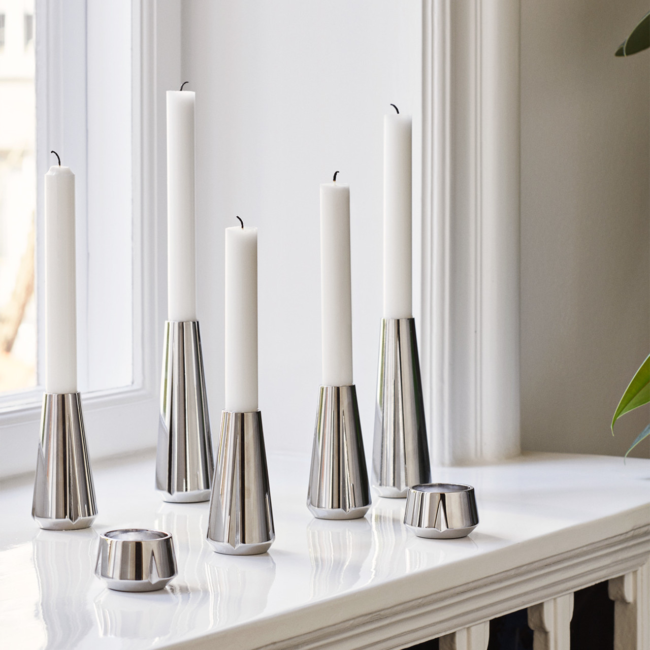 Rosendahls Grand Cru serie udvides med denne fyrfadsstage i krom, der er særdeles smuk i sit udtryk. Dens enkelthed bliver komplementeret af den skinnende overflade, der gør stagen bemærkelsesværdig. Den lille fyrfadsstage og de to kronelysestager fra samme serie giver i kombination et sikkert og stilrent udtryk. Den store højdeforskel på de to er ideel til den moderne bolig, og det vil sørge for, at stagerne får den helt rette opmærksomhed. Fyrfadsstagen måler 3,5 cm i højden.Serie:Grand Cru