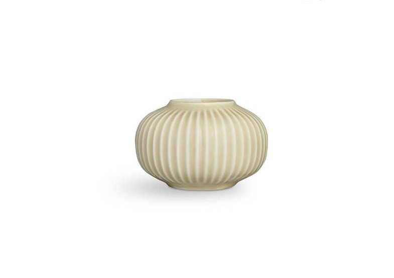 Få en smuk fyrfadsstage fra Kähler, der kommer i en helt særlig udgave. Hammershøi er en klassisk serie, og Hans-Christian Bauer har skabt en serie med inspiration fra det klassiske design. Her får du de runde og bløde former kombineret med det riflede mønster, men i en helt ny farvenuance. Denne farve kaldes birk og er en varm tone, der passer perfekt ind i den moderne bolig. Her er der ikke brugt tid på en masse udsmykning, men i stedet for på fyrfadsstagens fulde udtryk. Denne fyrfadsstage måler 10 cm, og du kan med fordel kombinere den med andre størrelser fra samme serie.