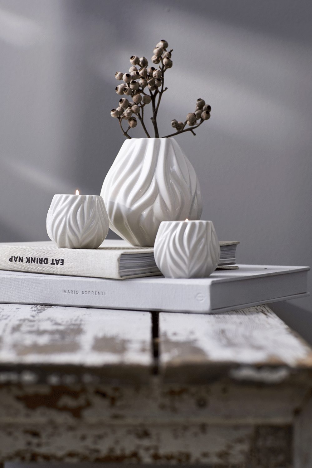 Stagerne kompletterer Morsøs populære Flame vase-serie og giver dig mulighed for at skabe et sammenhængende udtryk i din boligindretning. Den rene, hvide porcelæn fremhæver de skulpturelle linjer i designet og gør fyrfadsstagerne til dekorative elementer i sig selv - også når de ikke er tændt.