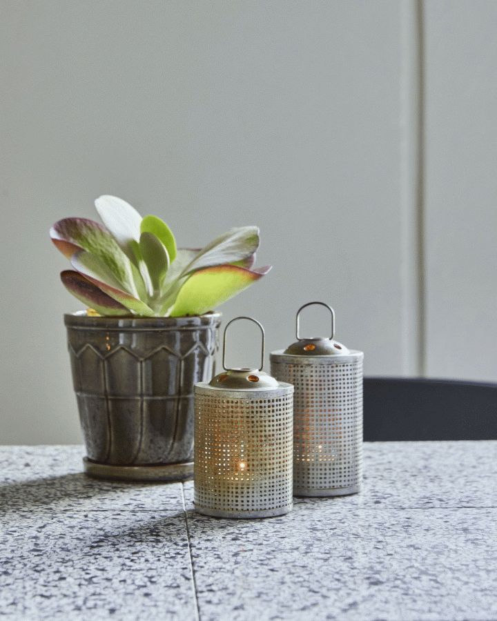 House Doctor Meta Fyrfadsstage leveres som et sæt med to stager, der kombinerer industriel æstetik med et raffineret udtryk. Hver stage er fremstillet i jern med en antik messingfinish, der giver et tidløst og varmt præg. Det perforerede design skaber et unikt lysspil, hvor lyset filtreres gennem de små huller og kaster bløde skygger i rummet.Stagerne er håndlavede, hvilket giver hver enkelt et individuelt udtryk med små variationer i farve, finish og størrelse. Dette håndværk tilføjer autenticitet og karakter til produktet. Den antikke messingfinish giver en patineret overflade, der passer perfekt ind i både moderne og klassiske indretningsstile. Det perforerede mønster skaber en industriel kant, mens det samtidig sikrer en behagelig lysfordeling, der bidrager til en hyggelig atmosfære.