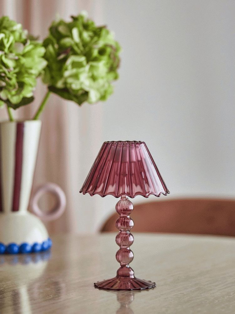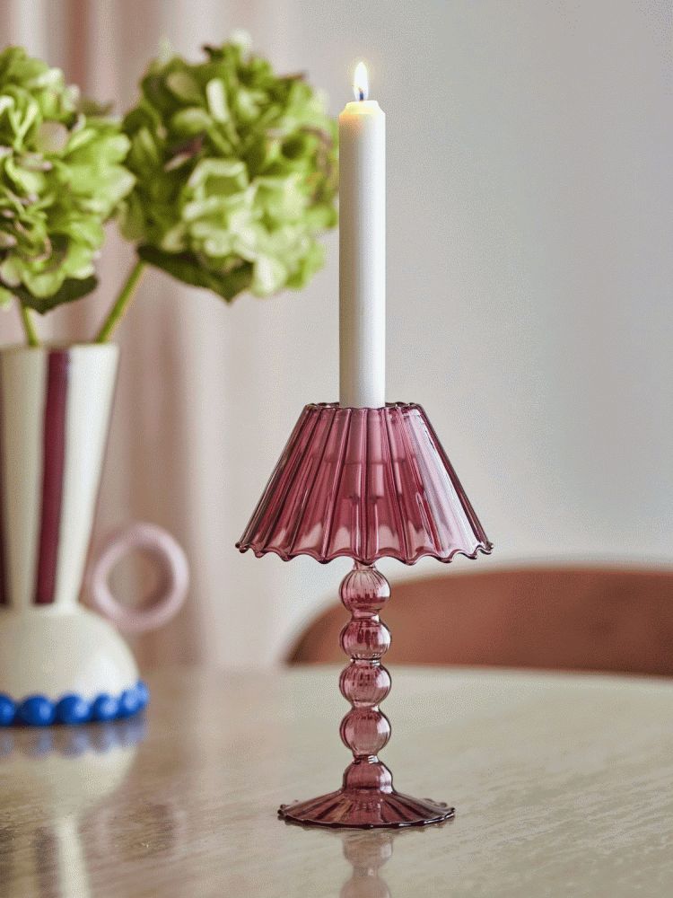 Cisco Fyrfadsstagen fra Bloomingville bringer et varmt og indbydende lys ind i hjemmet med sit karakteristiske design, der minder om en klassisk bordlampe i miniatureformat. Denne smukke lysestage er fremstillet i glas og præsenteret i en dyb rød farve, der tilfører personlighed og varme til ethvert rum.Designet udmærker sig ved sine fine detaljer på både fod og skærm, som giver stagen et raffineret og charmerende udtryk. Den røde nuance skaber en behagelig kontrast i indretningen og fungerer som et dekorativt element, selv når lyset ikke er tændt. Når et fyrfadslys placeres i stagen, spredes et blødt og hyggeligt lys gennem glasset, hvilket skaber en stemningsfuld atmosfære i rummet.