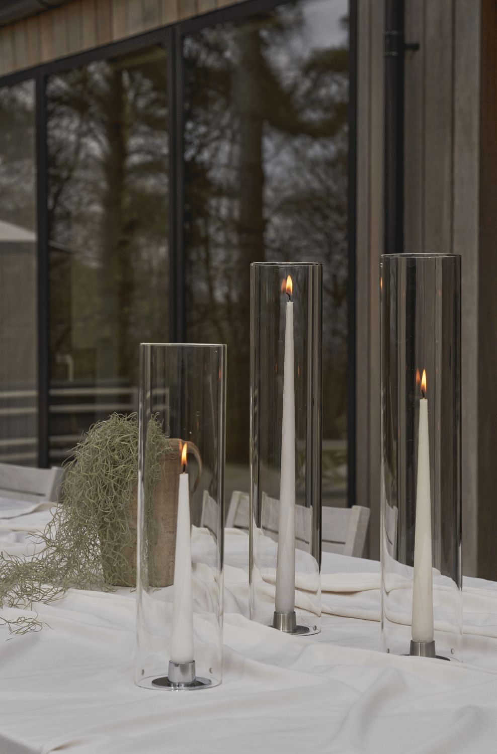 Dette elegante cylinderglas fra ester & erik tilbyder en praktisk og stilfuld løsning til at beskytte dine levende lys mod vind og træk. Med sin imponerende højde på 45 cm skaber glasset en markant tilstedeværelse på bordet, mens det samtidig sikrer, at flammen brænder roligt og jævnt gennem hele arrangementet.Designet er gennemtænkt med tre små lufthuller placeret nederst i glasset, som sikrer optimal iltcirkulation til flammen. Denne funktionelle detalje garanterer, at lyset brænder smukt og stabilt, uanset om du bruger glasset til en hyggelig middag indendørs eller til en sommeraften på terrassen. Den klare glasoverflade fremhæver lysets naturlige skær og skaber en varm, indbydende atmosfære omkring bordet.