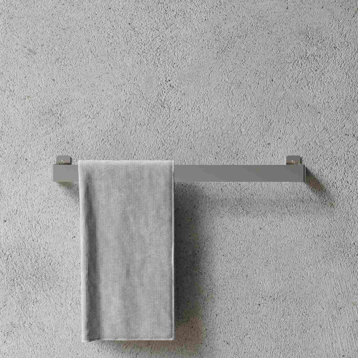 NICHBA Håndklædeholder i børstet rustfrit stål kombinerer funktionel opbevaring med et tidløst skandinavisk design, der passer perfekt ind i det moderne badeværelse. Denne håndklædeholder er designet til at skabe orden og struktur, samtidig med at den tilføjer en elegant detalje til væggene.Med sine 60 centimeter i længde giver håndklædeholderen rigelig plads til både store badehåndklæder og mindre gæstehåndklæder. Den børstede overflade i rustfrit stål giver produktet et raffineret udtryk, der harmonerer smukt med andre armaturer og tilbehør på badeværelset. Materialevalget sikrer en robust konstruktion, der tåler daglig brug i fugtige miljøer uden at miste sit flotte udseende.