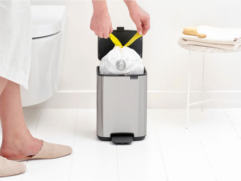 Brabantias gennemtænkte design viser sig i de mange smarte funktioner. Stay-open-funktionen låser låget i åben position, så udskiftning af affaldsposer bliver enkelt og bekvemt. Den aftagelige indvendige plastspand gør rengøring til en leg, mens transporthåndtaget sikrer nem flytning rundt i hjemmet.