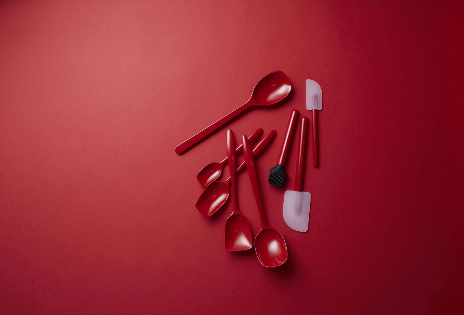- Klassisk rød farve, der passer ind i ethvert køkken