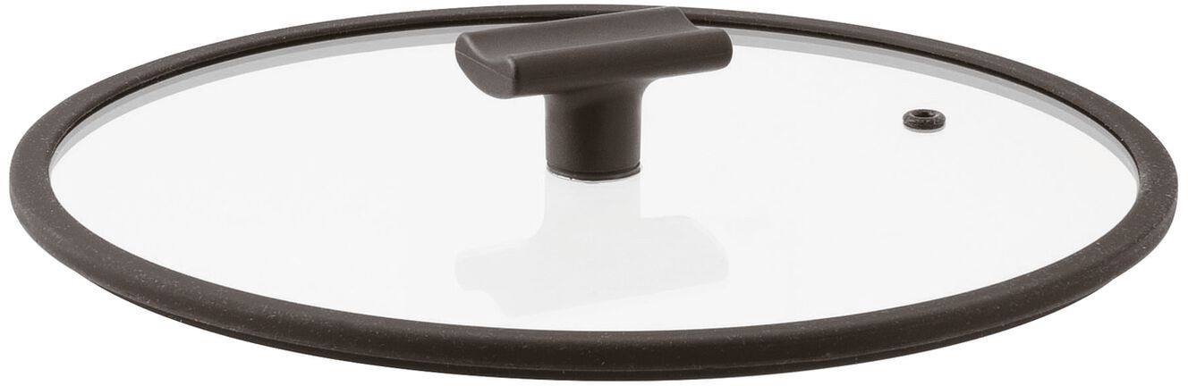 Det gennemsigtige glas gør det nemt at overvåge tilberedningsprocessen, så du kan tilpasse varme og tid efter behov. Ventilationsåbningen forhindrer overtryk og sikrer jævn fordampning, hvilket er særligt vigtigt ved langsom simring og kogning. Den silikone kant beskytter mod varme og giver et sikkert greb, når låget skal løftes.
