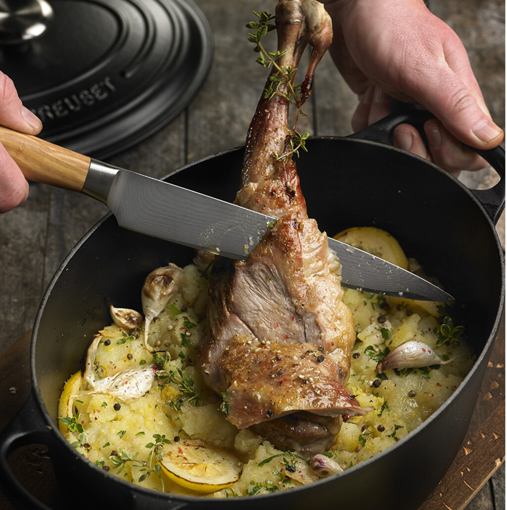 Grydens ovale design er et gennemtænkt valg, der kombinerer det bedste fra Le Creusets klassiske runde kasseroller med ekstra anvendelighed. Den er dimensioneret til at kunne rumme større stykker kød som en hel lammekølle, samtidig med at dens slanke profil efterlader plads i ovnen til tilbehør.