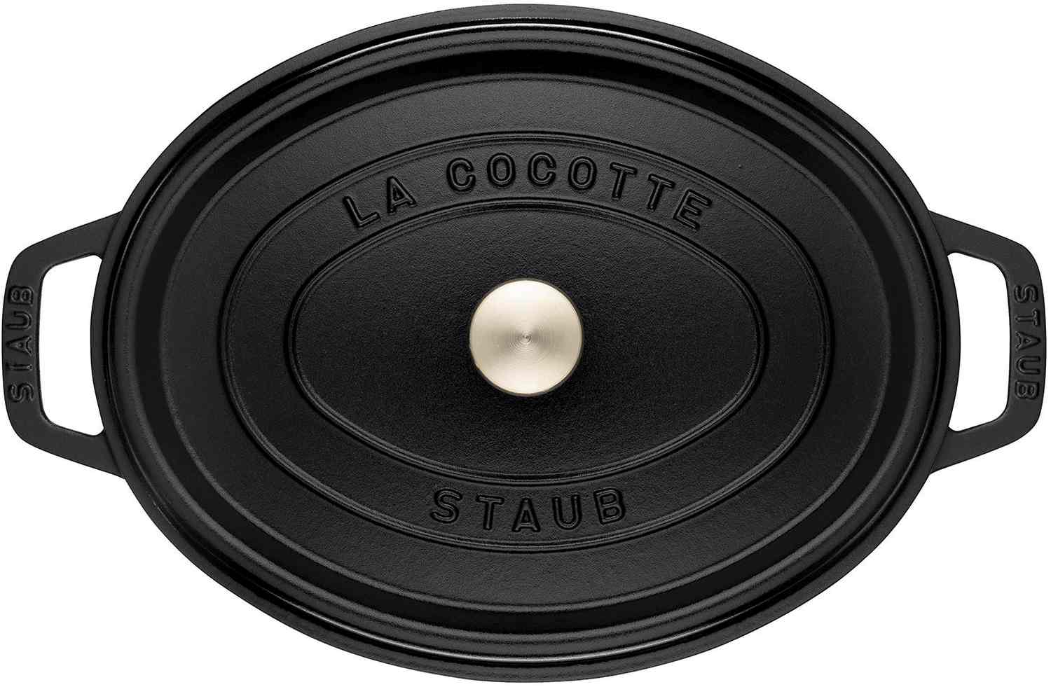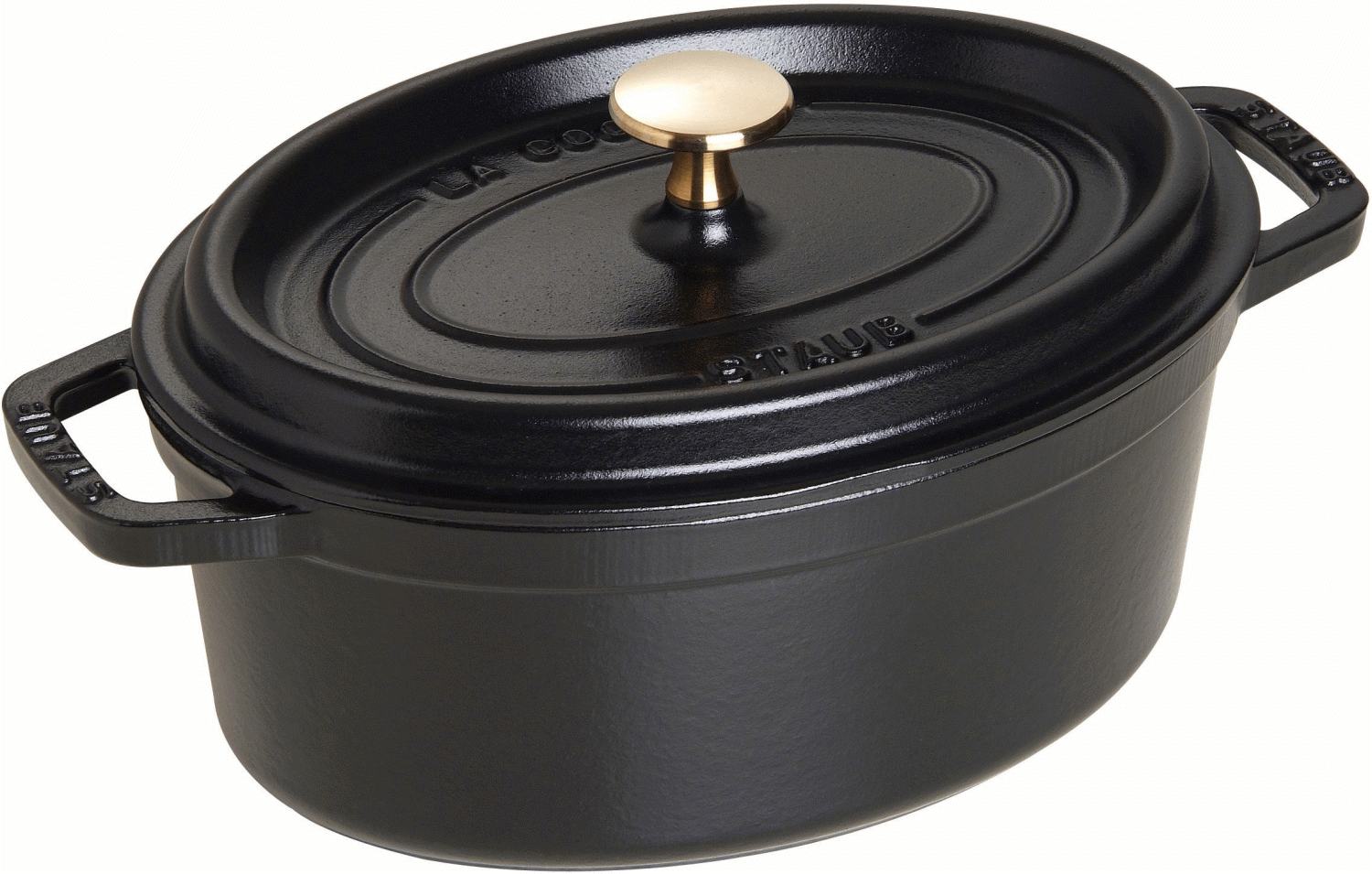 Staub La Cocotte i sort støbejern kombinerer traditionelt håndværk med moderne funktionalitet og skaber den perfekte gryde til langtidstilberedning. Denne elegante ovale cocotte på 23 cm i diameter er designet til at levere exceptionelle madlavningsresultater, uanset om du tilbereder en saftig braiseret ret eller en duftende gryderet.Grydens gennemtænkte konstruktion bygger på Staubs berømte ekspertise inden for støbejernsprodukter. Den kulstofholdige binding mellem støbejernet og emaljebelægningen sikrer optimal varmefordeling, mens den glasbaserede emalje garanterer hurtig og ensartet opvarmning gennem hele gryden. Med en kapacitet på 2,35 liter og dimensioner på 29,5 x 24 cm passer denne cocotte perfekt til mellomstore portioner og familiemåltider.