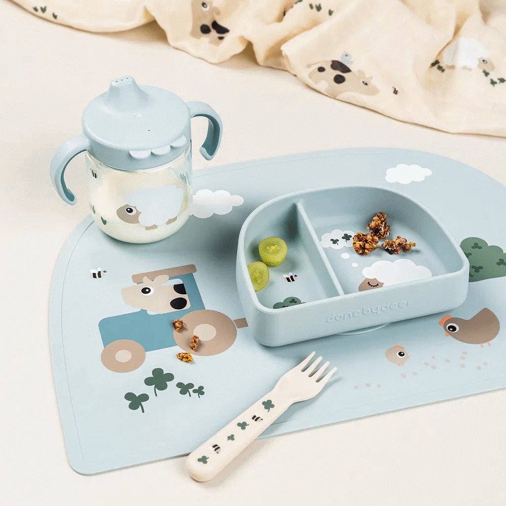 Done by Deer Tiny Farm Tudkop – praktisk drikkekop til små hænderDenne tudkop fra Done by Deer er designet til at gøre overgangen fra sutteflaske til kop lettere for de mindste. Med en kapacitet på 260 ml er koppen ideel til vand, mælk eller juice, og det gennemtænkte design gør den nem at bruge for børn, der lige er begyndt at drikke selv.