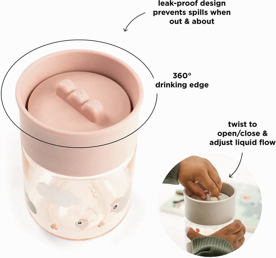 - 360° drikkekant tillader barnet at drikke fra alle sider