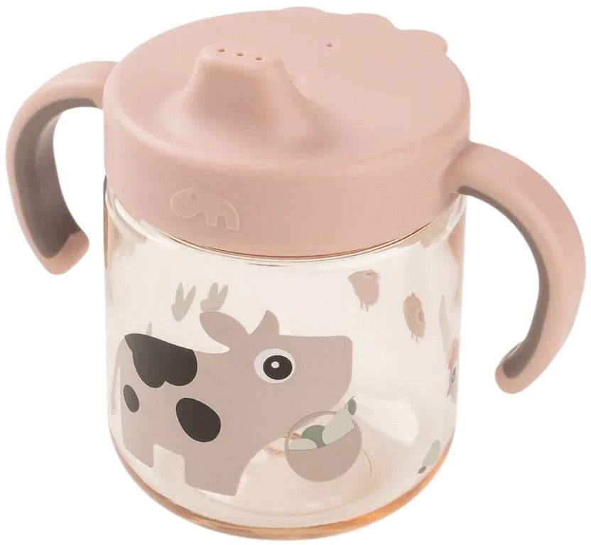 Done by Deer Tiny Farm Tudkop i 260 ml er designet til at gøre overgangen fra sutteflaske til almindelig kop lettere for de mindste. Med sin pudderfarve og gennemtænkte funktionalitet er denne tudkop et praktisk valg til familier med småbørn, der er ved at lære at drikke selv.Koppen er udstyret med en silikoneforseglet tud, der hjælper med at reducere spild og gør det nemmere for barnet at drikke selvstændigt. De skridsikre håndtag er specielt tilpasset små hænder og sikrer et godt greb, så koppen kan holdes sikkert under måltiderne. Dette giver barnet en følelse af kontrol og selvstændighed, samtidig med at forældrene kan være trygge ved, at koppen sidder godt fast.