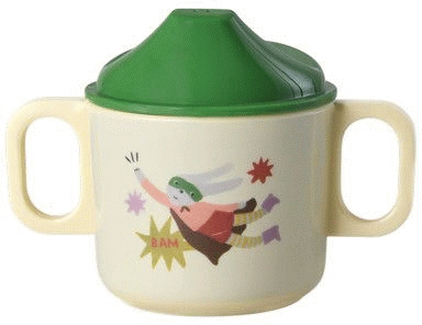 RICE KIDS Hero Børnekop i grøn melamin er designet til familiens mindste med både funktionalitet og stil i fokus. Koppen har et cool "Hero" print, der gør måltiderne sjovere, mens det praktiske tudlåg hjælper de små hænder med at drikke selvstændigt uden spild.Melamin er et robust materiale, der tåler det daglige slid i en travl børnefamilie. Materialet er både stærkt og let at holde rent, hvilket gør det til et oplagt valg til børn, der er i gang med at lære at drikke selv. Den grønne farve og det grafiske Hero-motiv giver koppen et moderne udtryk, der passer perfekt ind i det skandinaviske køkken.