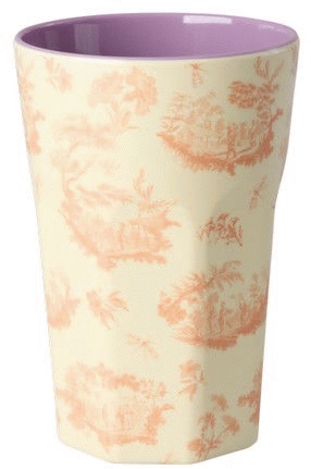 RICE Kop 40 cl i Toile De Rice-design bringer et strejf af klassisk elegance til dit daglige kaffebord med sit karakteristiske mønster og praktiske design. Koppen er fremstillet i melamin, et materiale der kendetegnes ved sin robusthed og lette vægt, hvilket gør den ideel til både hverdagsbrug og mere festlige anledninger.Med en kapacitet på 40 cl er denne kop perfekt til din morgenkaffe, en varm kop te eller en dejlig kakao. Den rummelige størrelse betyder, at du ikke konstant skal genopfylde, og du kan i stedet nyde din drik i ro og mag. Det smukke Toile De Rice-mønster giver koppen en unik karakter, der skiller sig ud fra almindelige kaffekrus og tilføjer personlighed til dit køkken eller spisestue.