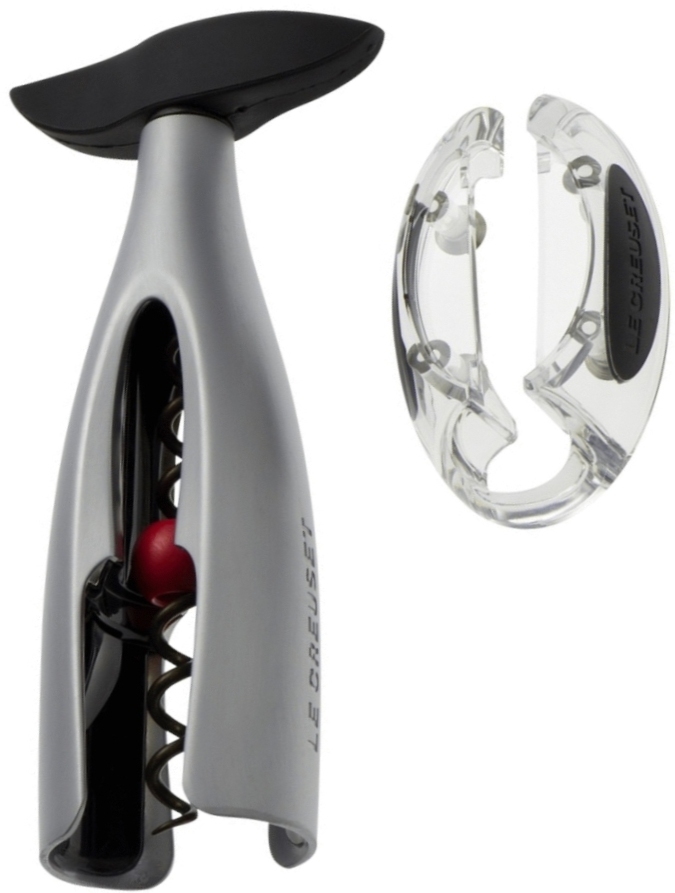 Le Creuset GS-300 Proptrækker med Folieskærer i elegant sølv design kombinerer funktionalitet med det velkendte Le Creuset kvalitetshåndværk. Denne innovative proptrækker gør vinåbning til en problemfri oplevelse, så du hurtigere kan nyde dit glas vin uden kamp med genstridige propper.Den selvoptrækkende mekanisme arbejder effektivt og kræver minimal anstrengelse. Du placerer blot skruen i proppen og fortsætter med at dreje i samme retning, hvorefter proppen automatisk trækkes op af flasken. Den integrerede folieskærer fjerner hurtigt og præcist beskyttelsesfolien med en enkel kvart drejning af håndleddet.