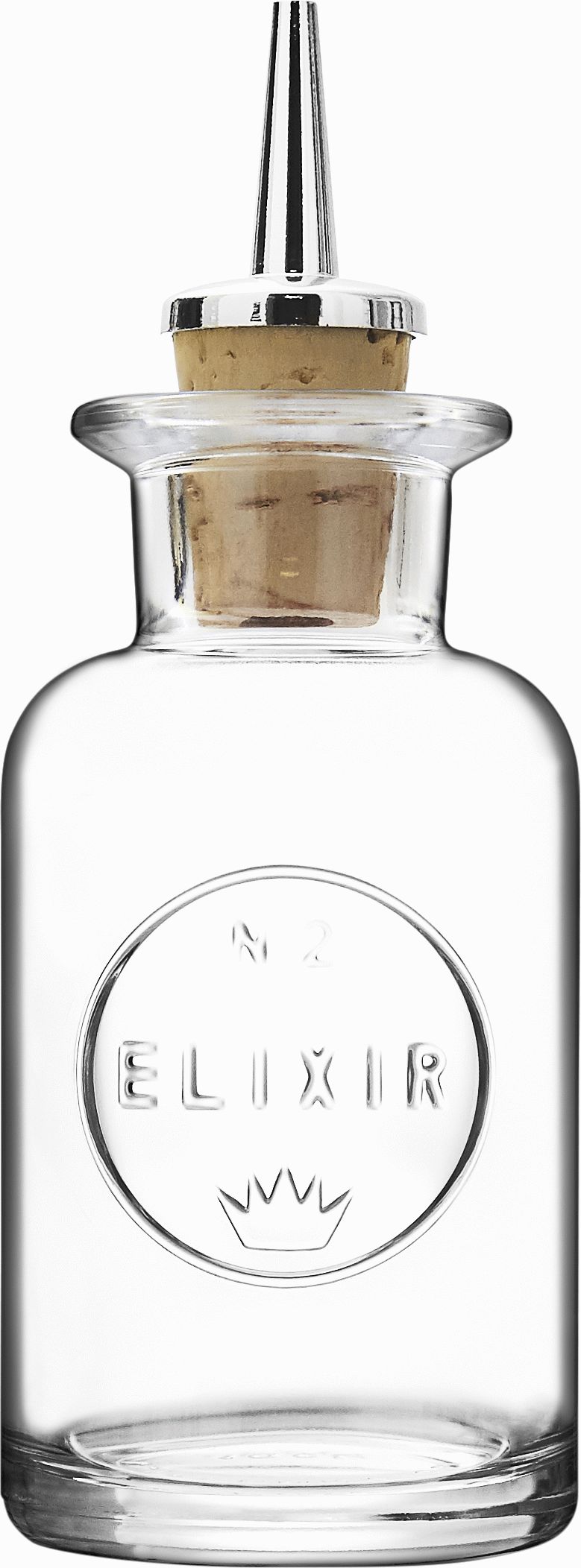 Luigi Bormioli Elixir No. 2 Flaske med Skænkeprop i 10 cl kombinerer italiensk glaskunst med praktisk funktionalitet til både hjemmebaren og køkkenet. Det facetterede design med indgraveret tekst giver flasken et elegant udtryk, der passer perfekt til moderne indretning.Flasken er fremstillet i Luigi Bormiolis karakteristiske soda-lime glas, der kendetegnes ved sin klare og brillante overflade. Det facetterede glasmønster skaber et smukt lysspil og fremhæver indholdet på en æstetisk tiltalende måde. Kombinationen af funktionel design og raffineret udseende gør denne flaske til et attraktivt element på ethvert barskab eller køkkenbord.